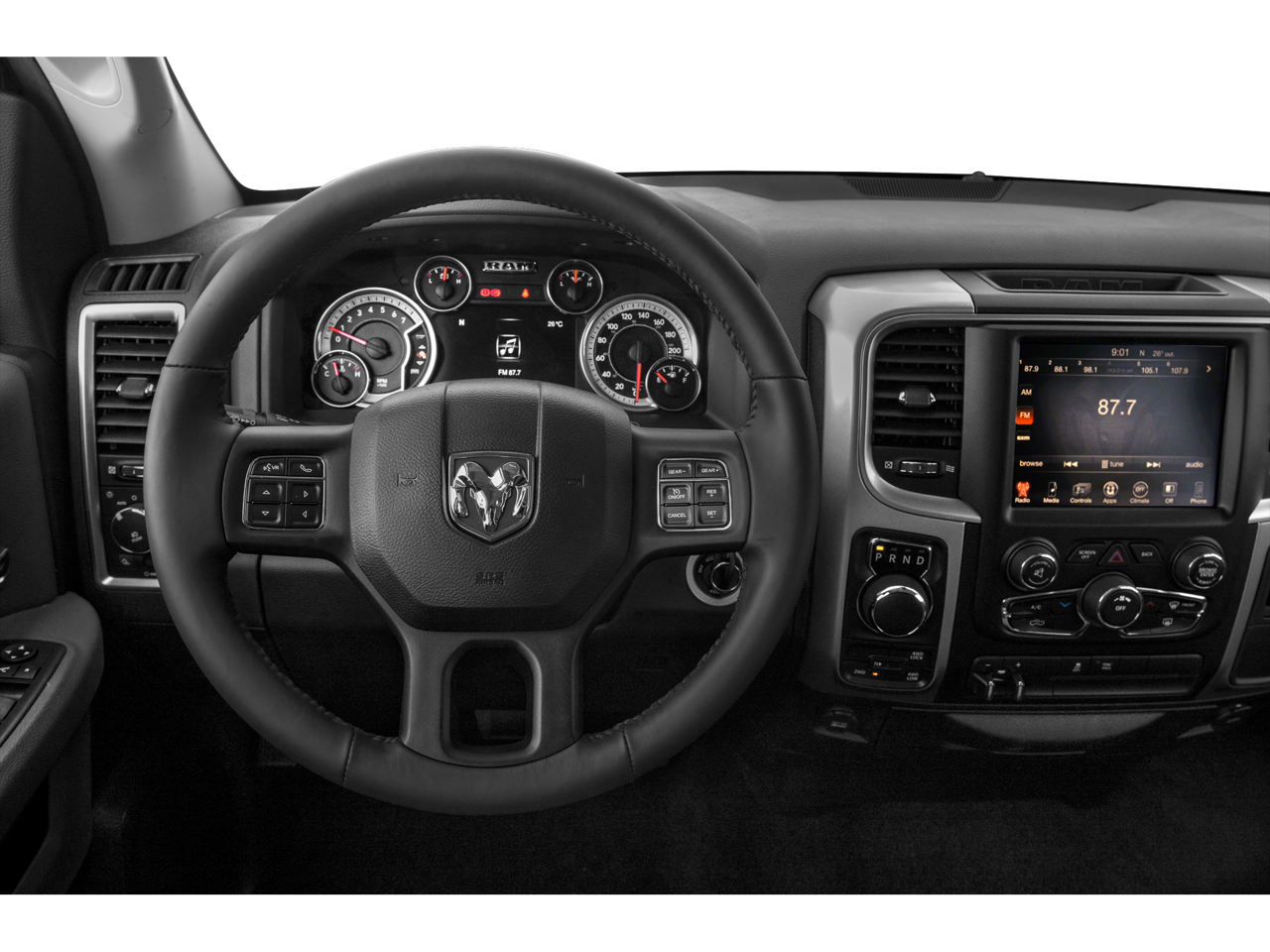 QUICK ORDER PACKAGE 22Z BIG HORN Engine: 3.6L V6 24V VVT, Transmission: 8-Speed Automatic 845RE, Full Size Temporary Use Spare Tire, Leather Wrapped Steering Wheel, Steering Wheel Mounted Audio Controls, Bright/Bright Billets Grille, Locking Lug Nuts, Big Horn Regional Package, Electric Shift On Demand Transfer Case, Big Horn Badge, REAR CAMERA & PARK ASSIST GROUP ParkView Rear Back-Up Camera, ParkSense Front/Rear Park Assist System, LUXURY GROUP Leather Wrapped Steering Wheel, Exterior Mirrors w/Supplemental Signals, Rear Dome w/On/Off Switch Lamp, Underhood Lamp, Steering Wheel Mounted Audio Controls, Exterior Mirrors Courtesy Lamps, Glove Box Lamp, Ash Tray Lamp, Rear View Auto Dim Mirror w/Microphone, Auto Dim Exterior Mirrors, Universal Garage Door Opener, Power Folding Mirrors, Power Heated Fold-Away Mirrors, Sun Visors w/Illuminated Vanity Mirrors, Electroluminescent Instrument Cluster, Overhead Console w/Garage Door Opener, RADIO: UCONNECT 8.4A AM/FM/SXM/BT SIRIUSXM Satellite Radio, No satellite coverage in Hawaii or Alaska, (Reg, Required), Media Hub (SD, USB, AUX), For Details Go To DriveUconnect.com, (Registration Required), Remote SD Card Slot, Harman Radio Manufacturer, Uconnect Access, 8.4 Touchscreen Display, Nav-Capable! See Dealer for Details, COMFORT GROUP Heated Steering Wheel, Heated Front Seats, REMOTE START & SECURITY GROUP Remote Start System, Security Alarm, DIESEL GRAY/BLACK, PREMIUM CLOTH BUCKET SEATS Power Lumbar Adjust, 115V Auxiliary Power Outlet, Bucket Seats, Full Length Floor Console, Rear 60/40 Split Folding Seat, Folding Flat Load Floor Storage, Power 10-Way Driver Seat, Ash Tray Lamp, SINGLE DISC REMOTE CD PLAYER, TRANSMISSION: 8-SPEED AUTOMATIC 845RE (STD), ENGINE: 3.6L V6 24V VVT (STD).