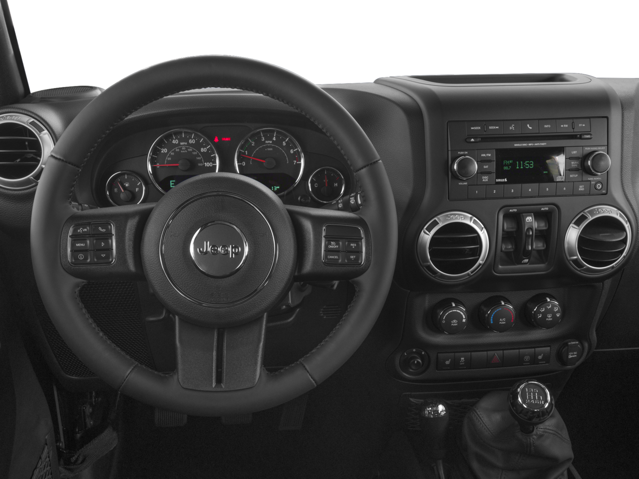 DUAL TOP GROUP Black 3-Piece Hard Top, Premium Black Sunrider Soft Top, TRANSMISSION: 5-SPEED AUTOMATIC (W5A580) Tip Start, Hill Descent Control, BLACK, LEATHER TRIMMED BUCKET SEATS Front Seat Back Map Pockets, Driver Height Adjuster Seat, Heated Front Seats, RADIO: 430 NAV 6.5 Touchscreen Display, Remote USB Port, 40GB Hard Drive w/28GB Available, GPS Navigation, SiriusXM Travel Link, CONNECTIVITY GROUP Vehicle Information Center, Remote USB Port, Uconnect Voice Command w/Bluetooth®, Tire Pressure Monitoring Display, TRAILER TOW GROUP Class II Receiver Hitch, Trailer Tow w/4-Pin Connector Wiring, REMOTE START SYSTEM, AIR CONDITIONING W/AUTO TEMP CONTROL Humidity Sensor, Air Filtering, ENGINE: 3.6L V6 24V VVT (STD).