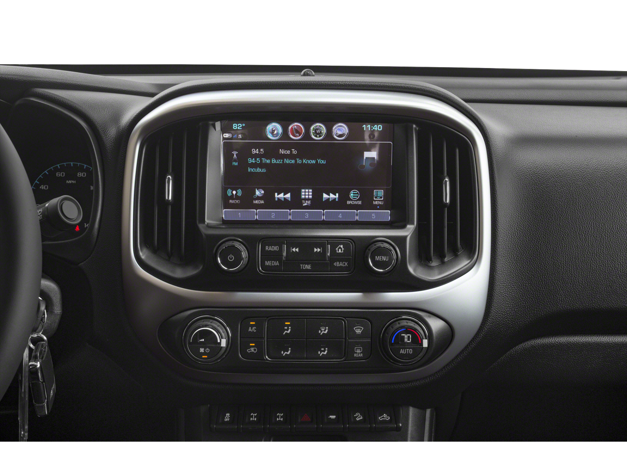 - Audio System, Chevrolet MyLink Radio with 8" diagonal color touch-screen, AM/FM stereo seek-and-scan and digital clock, includes Bluetooth® streaming audio for music and select phones; voice-activated technology for radio and phone; featuring Apple CarPlay capability for compatible phone; includes auxiliary jack