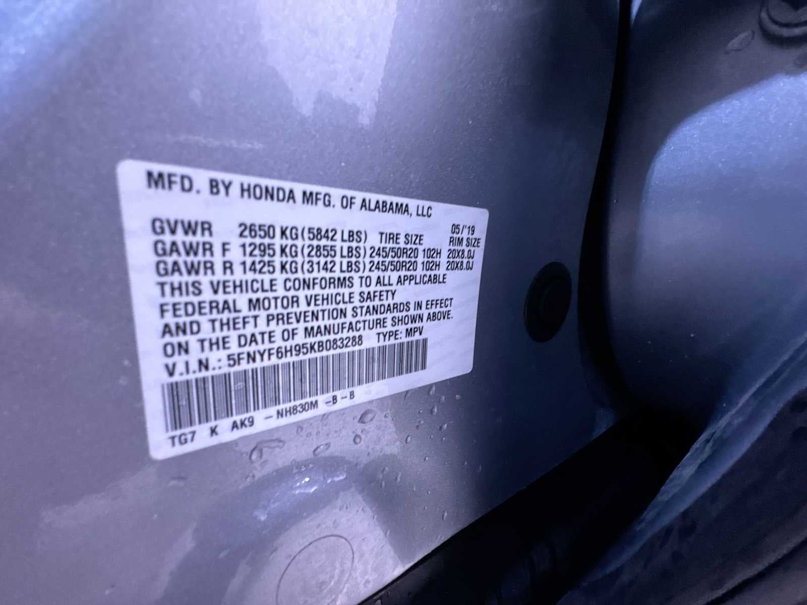 - Front Tire Size: P245/50HR20