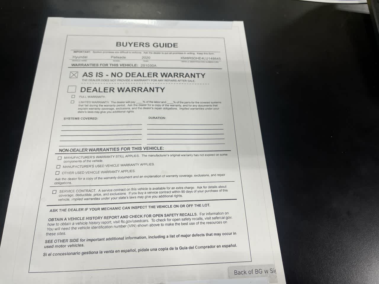 - Vehicle Name: Hyundai Palisade