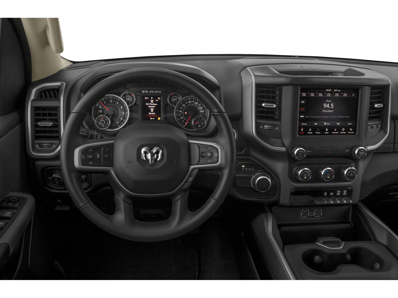 BIG HORN LEVEL 2 EQUIPMENT GROUP Radio: Uconnect 4 w/8.4 Display, Rear Window Defroster, ParkSense Front/Rear Park Assist w/Stop, Rear View Auto Dim Mirror, Power Adjustable Pedals, Rear Power Sliding Window, Rear Dome w/On/Off Switch Lamp, Glove Box Lamp, Power 4-Way Driver Lumbar Adjust, 115V Auxiliary Rear Power Outlet, Power 8-Way Driver Seat, 2 USB Full Function/Charge Only Media Hub, Heated Front Seats, Heated Steering Wheel, Foam Bottle Insert (Door Trim Panel), Class IV Receiver Hitch, Dampened Tailgate, Security Alarm, Black Premium Power Mirrors, Big Horn IP Badge, Remote Start System, SiriusXM Satellite Radio, 400W Inverter, Air Conditioning ATC w/Dual Zone Control, 115V Auxiliary Power Outlet, Cluster 7.0 TFT Color Display, Universal Garage Door Opener, Sun Visors, NIGHT EDITION Tires: 275/55R20 OWL All Season, Black Headlamp Bezels, Body Color Premium Power Mirrors, Body Color Door Handles, Exterior Mirrors Courtesy Lamps, Auto Dim Exterior Driver Mirror, Black Exterior Truck Badging, Anti-Spin Differential Rear Axle, Wheels: 20 x 9.0 Premium Paint/Polished, Exterior Mirrors w/Memory, Grille Surround 1 Black Texture 2 Black, Body Color Exterior Mirrors, Black Interior Accents, Dual Exhaust w/Black Tips, Power-Folding Mirrors, Body Color Front Bumper, Body Color Rear Bumper w/Step Pads, ENGINE: 5.7L V8 HEMI MDS VVT Active Noise Control System, 180 Amp Alternator, Heavy Duty Engine Cooling, GVWR: 7,100 lbs, Dual Rear Exhaust w/Bright Tips, HEMI badge, 600W Engine Cooling Fan, 26 Gallon Fuel Tank, BLACK TUBULAR SIDE STEPS, REMOTE START SYSTEM, TRANSMISSION: 8-SPEED AUTOMATIC (8HP75), DELUXE CLOTH BUCKET SEATS Power 8-Way Driver Seat, Bucket Seats, Full Length Floor Console, Power 4-Way Driver Lumbar Adjust. Ram Big Horn with Billet Silver Metallic Clearcoat exterior and Black interior features a 8 Cylinder Engine with 305 HP at 6400 RPM*.