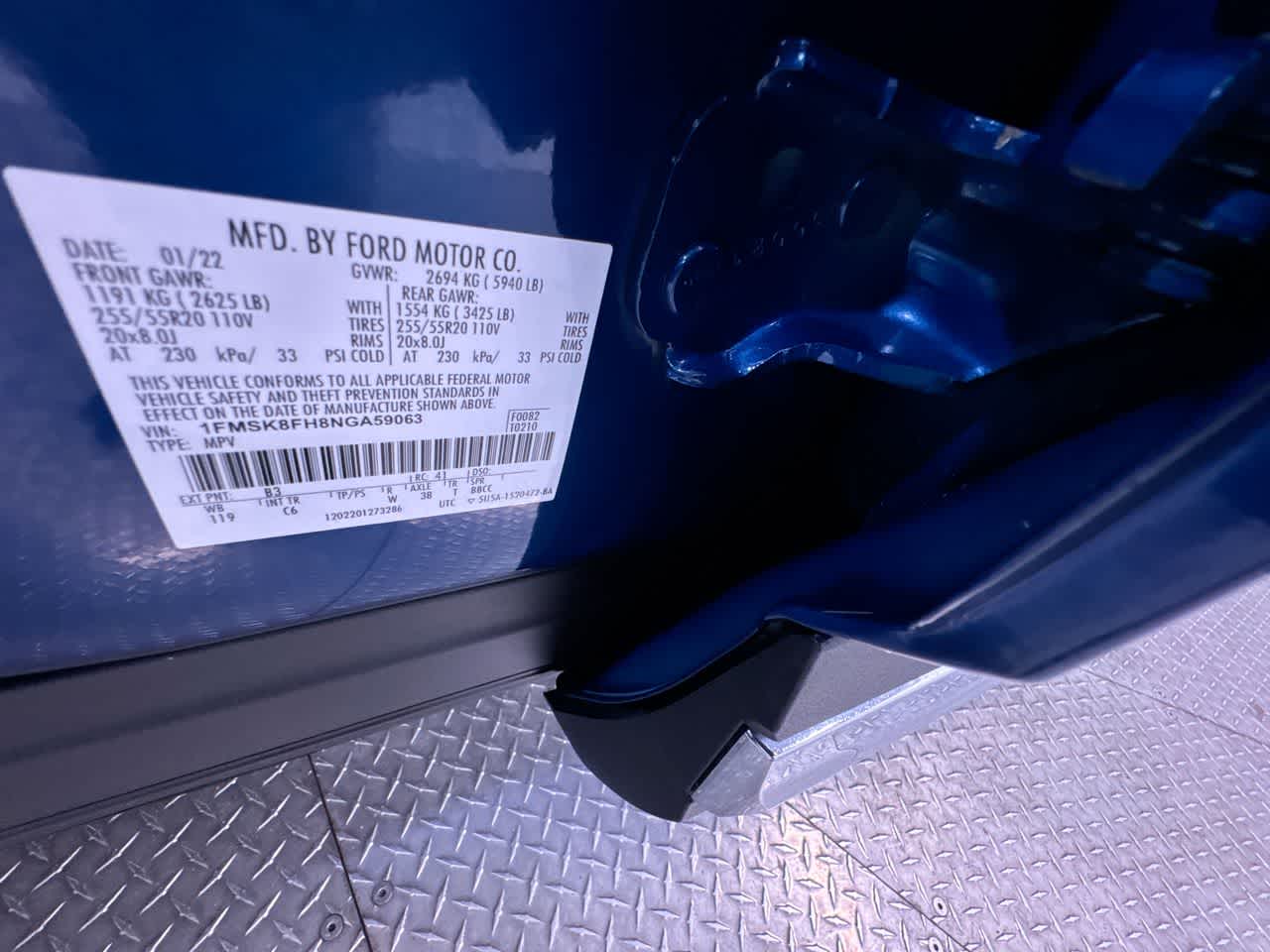 EQUIPMENT GROUP 301A Limited Convenience Package, Memory Drivers Seat, Power Tilt/Telescoping Steering Column, Hands-Free Foot-Activated Liftgate, 3rd Row PowerFold Seat, Folds flat, 110V/150W AC Power Outlet, Replaces the powerpoint port on the rear side of the center floor console, Sideview Mirrors w/Gloss Black Caps, power-folding w/Autofold, power and heated glass, LED turn signal indicators, security approach lamps, driver and passenger side memory, FRONT & SECOND ROW FLOOR LINERS (16B) standard front and second row black carpet floor mats, TRANSMISSION: 10-SPEED AUTOMATIC (STD). Ford Limited with Atlas Blue exterior and Ebony interior features a 4 Cylinder Engine with 300 HP at 5500 RPM*.