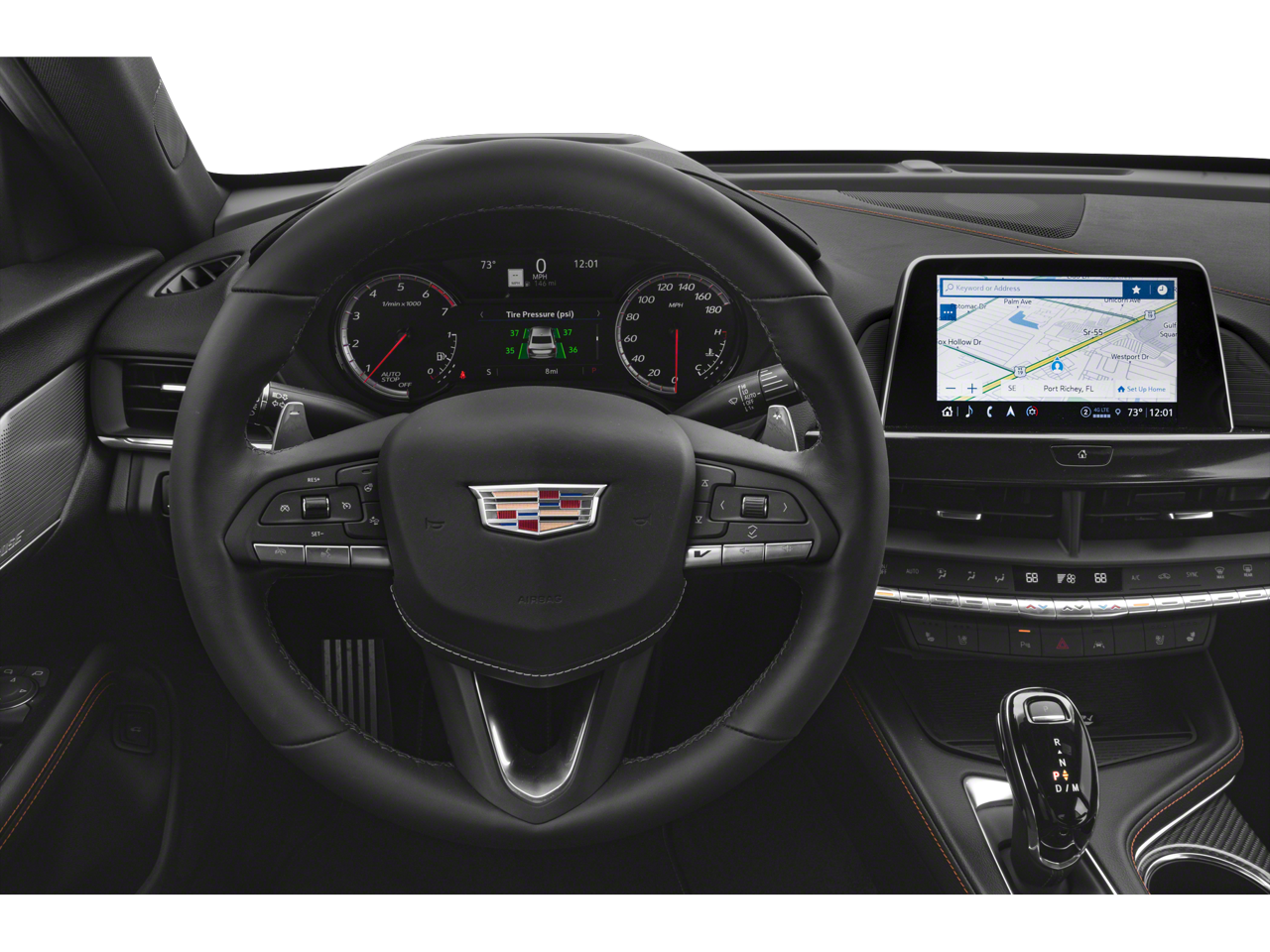TRANSMISSION, 10-SPEED AUTOMATIC Includes (BTV) Adaptive Remote Start, (KB7) Steering wheel mounted Alloy paddle shift controls, (T8Z) Buckle to Drive, Rotary-jog infotainment controller and (JM8) Automatic vehicle hold brake.), SUNROOF, POWER WITH EXPRESS OPEN AND VENTING, TECHNOLOGY PACKAGE includes (KEM) Air Ionizer and (UV6) Head-Up Display, CLIMATE PACKAGE includes (KA1) heated driver and front passenger seats, (KU9) ventilated driver and front passenger seats, (KI3) automatic heated steering wheel, (AF6) driver power lumbar massage and (AKE) front passenger power lumbar massage, CADILLAC USER EXPERIENCE WITH EMBEDDED NAVIGATION, AM/FM STEREO with connected navigation providing real-time traffic, 8 diagonal HD color information display, 2 USBs, personalized profiles for each drivers settings, Natural Voice Recognition, Phone Integration for Wireless Apple CarPlay®/Wireless Android Auto® capability for compatible phone, Connected Apps and Teen Driver (STD), ENGINE, 3.6L V6 TWIN TURBO SIDI, DOHC, VVT (472 hp [352 kW] @ 5750 rpm and 445 lb-ft torque [603 N-m]) (STD).