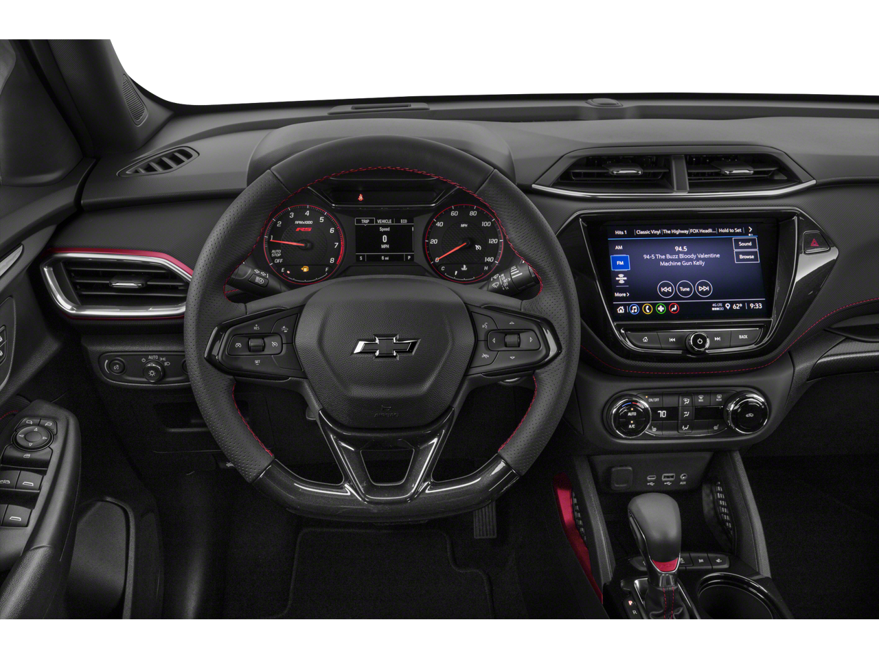 CONVENIENCE PACKAGE includes (C68) automatic climate control air conditioning, (UIJ) 8" diagonal color touchscreen display, (USS) one type-A and one type-C charging only USB ports, (KI6) 120-volt power outlet, (DD8) inside rearview auto-dimming mirror and (DMS) driver and front passenger illuminated vanity mirrors, covered, sliding visors, CONFIDENCE II PACKAGE includes (UD7) Rear Park Assist Beginning with start of production through November 28, 2022, vehicles will be forced to include (00Y) Not Equipped with Rear Park Assist, which removes Rear Park Assist. See dealer for details or the window label for the features on a specific vehicle. Beginning December 26, 2022, certain vehicles will be forced to include (060) Not Equipped with Rear Park Assist, which removes Rear Park Assist. Does not include later dealer retrofit. See dealer for details or the window label for the features on a specific vehicle.), AUDIO SYSTEM, CHEVROLET INFOTAINMENT 3 SYSTEM 7" diagonal color touchscreen, AM/FM stereo. Additional features for compatible phones include: Bluetooth® audio streaming for 2 active devices, voice command pass-through to phone, Apple CarPlay® and Android Auto® capable. (8" screen when (ZL3) Convenience Package and (ZL5) Driver Confidence Package are ordered.) (STD), ECOTEC 1.3L I3 TURBO DOHC SIDI WITH VARIABLE VALVE TIMING (VVT) (155 hp [115 kW] @ 5600 rpm, 174 lb-ft torque [236 N-m] @ 1600 rpm) (STD), TRANSMISSION, CONTINUOUSLY VARIABLE (CVT) (STD). Chevrolet RS with STERLING GRAY METALLIC exterior and JET BLACK W/ RED ACCENTS interior features a 3 Cylinder Engine with 155 HP at 5600 RPM*.