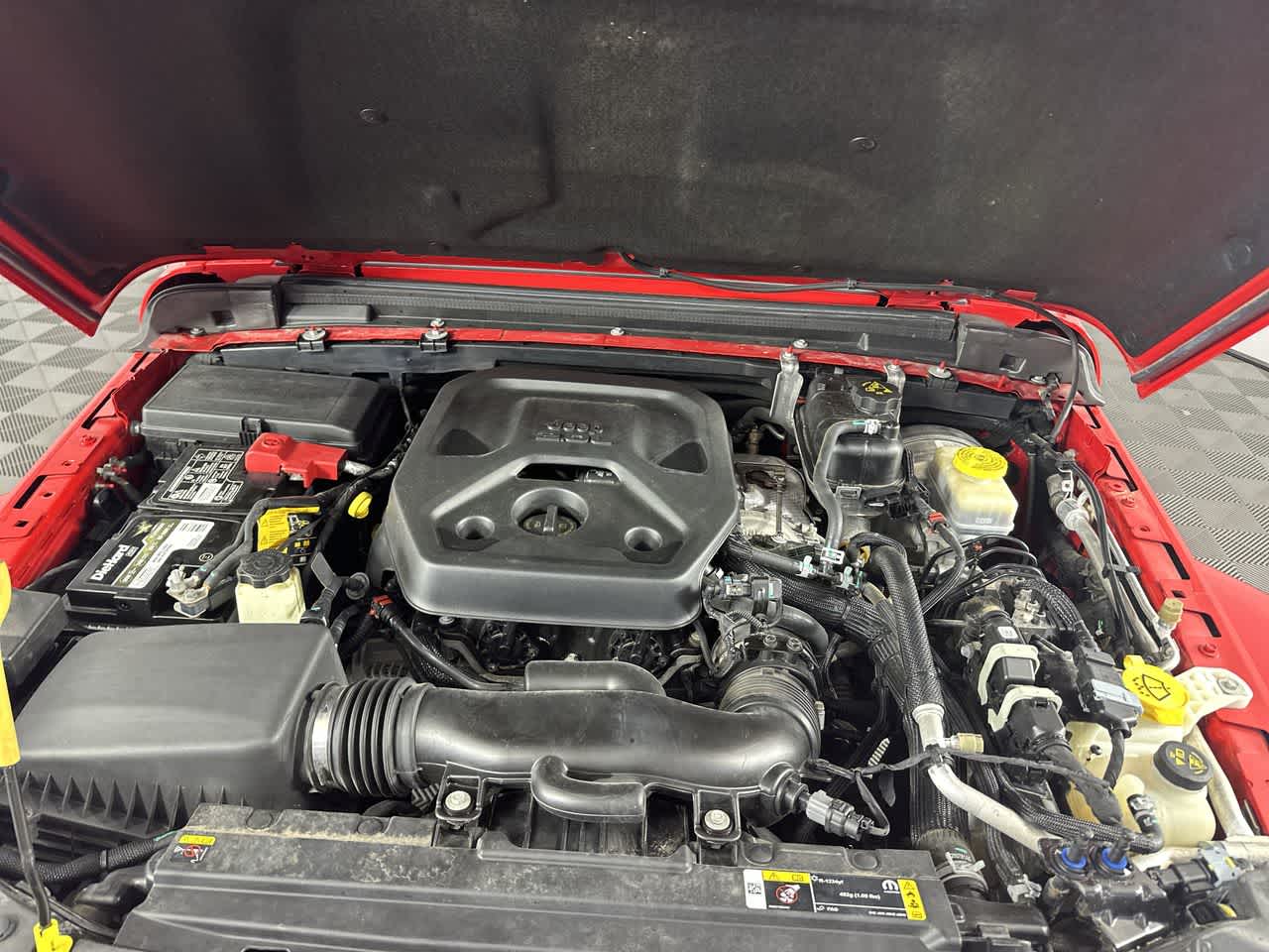 BLACK 3-PIECE HARD TOP Freedom Panel Storage Bag, Rear Window Defroster, Rear Window Wiper/Washer, No Soft Top, ENGINE: 2.0L I4 DOHC DI TURBO W/ESS (STD), TRANSMISSION: 8-SPEED AUTOMATIC (850RE) Selec-Speed Control (STD). Jeep Sahara with Firecracker Red Clearcoat exterior and Black interior features a 4 Cylinder Engine with 270 HP at 5250 RPM*.