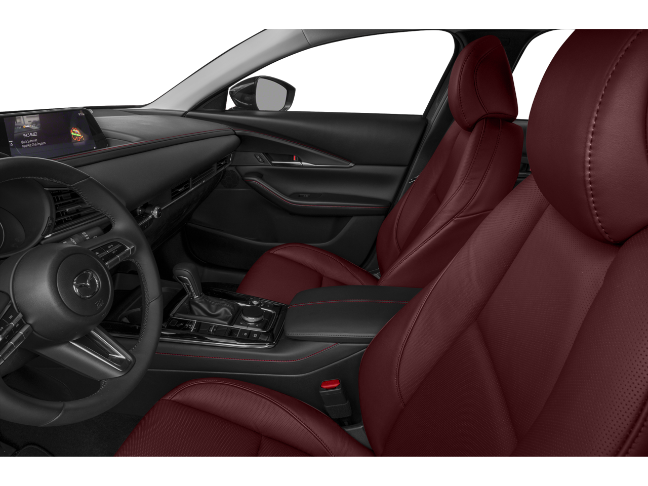 Leather Seats, Heated Driver Seat, Dual Zone A/C, Brake Actuated Limited Slip Differential, WiFi Hotspot, Blind Spot Monitor, Heated Seats Rear Spoiler, MP3 Player, Sunroof, Onboard Communications System. Mazda CX-30 2.5 S Carbon Edition with Polymetal Gray Metallic exterior and Red interior features a 4 Cylinder Engine with 191 HP at 6000 RPM*.