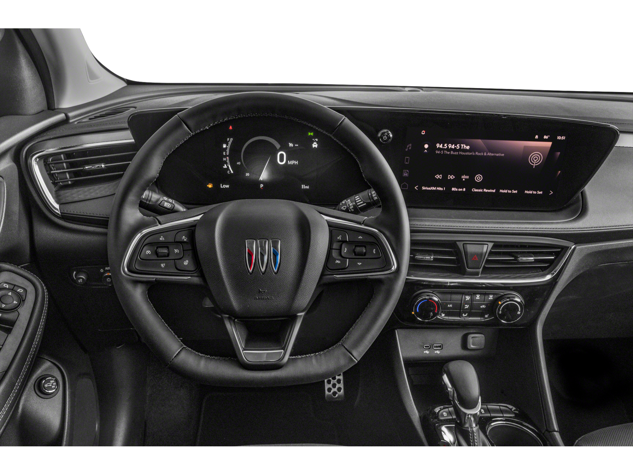 ADVANCED TECHNOLOGY PACKAGE includes (KSG) Adaptive Cruise Control, (UD7) Rear Park Assist, (UV2) HD Surround Vision and (K4C) Wireless Charging, COMFORT PACKAGE includes (A2X) driver 8-way power seat adjuster, (AL9) 2-way power driver lumbar control, (KA1) heated driver and front passenger seats, (UVD) heated steering wheel, (D7P) front passenger flat-folding seatback and (DA5) rear center armrest, AUDIO SYSTEM, 11 DIAGONAL HD COLOR TOUCHSCREEN, AM/FM STEREO. Additional features for compatible phones include: Bluetooth® audio streaming for 2 active devices, voice command pass-through to phone, wireless Apple CarPlay® and wireless Android Auto® capable (STD), ENGINE, ECOTEC 1.3L TURBO (GM-estimated 155 hp [115 kW] @ 5,600 rpm / 174 lb-ft torque [236 Nm] @ 1,600 rpm FWD/AWD models) (STD), CONTINUOUSLY VARIABLE (CVT) (STD). Buick Sport Touring with Ebony Twilight Metallic exterior and Ebony seats and interior with Santorini Blue stitching interior features a 3 Cylinder Engine with 155 HP at 5600 RPM*.